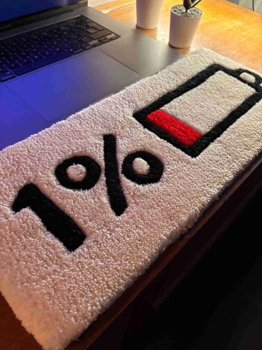 Low Battery Table Top & Keyboard Rug by Tuftplace
