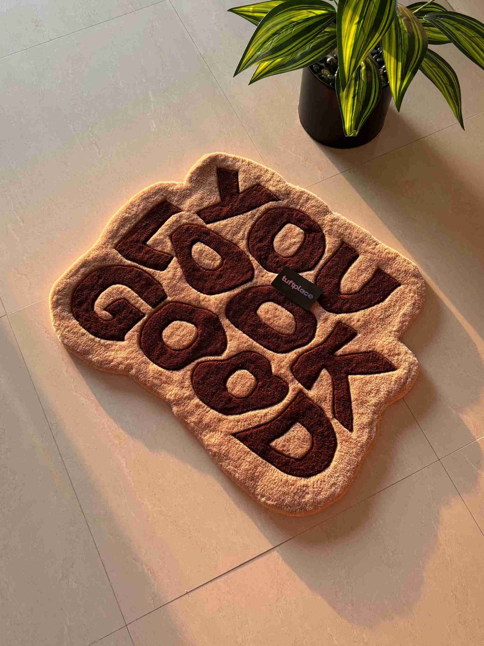 The You Look Good Brown and Beige Custom Handmade Rug